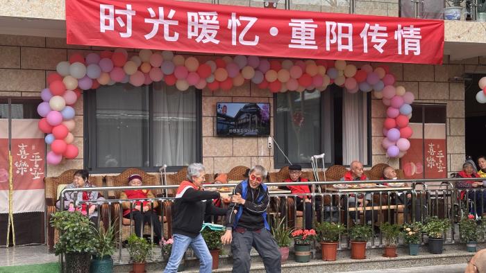 文艺表演环节精彩纷呈、暖意融融。志愿者合唱《我和我的祖国》,熟悉的旋律瞬间点燃全场热情,老人们纷纷跟唱附和;不少老人主动登台献艺,二胡独奏《赛马》节奏明快、诗歌朗诵《重阳颂》饱含深情,真挚的演绎赢得台下阵阵掌声与喝彩,台上台下互动频频,温情满溢。