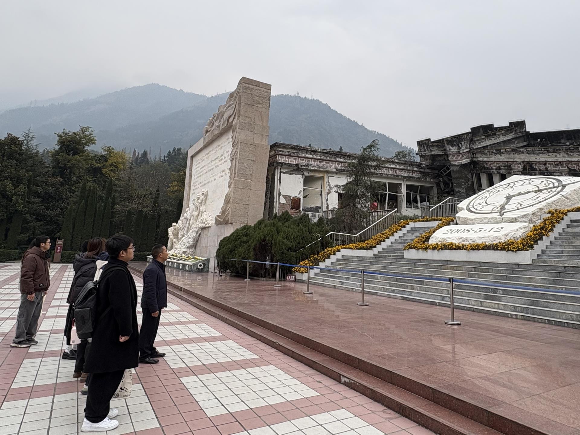 2025年12月8日,成都东软学院健康医疗科技学院党总支书记张勇带领党员教师代表,前往汶川特大地震漩口中学遗址,开展“感悟抗震精神 践行健康担当”红色研学活动。全体人员在这片承载民族记忆与精神力量的土地上,重温抗震救灾的壮阔历程,感悟“生命至上”的责任担当,接受了一次深刻的党性教育与精神洗礼。