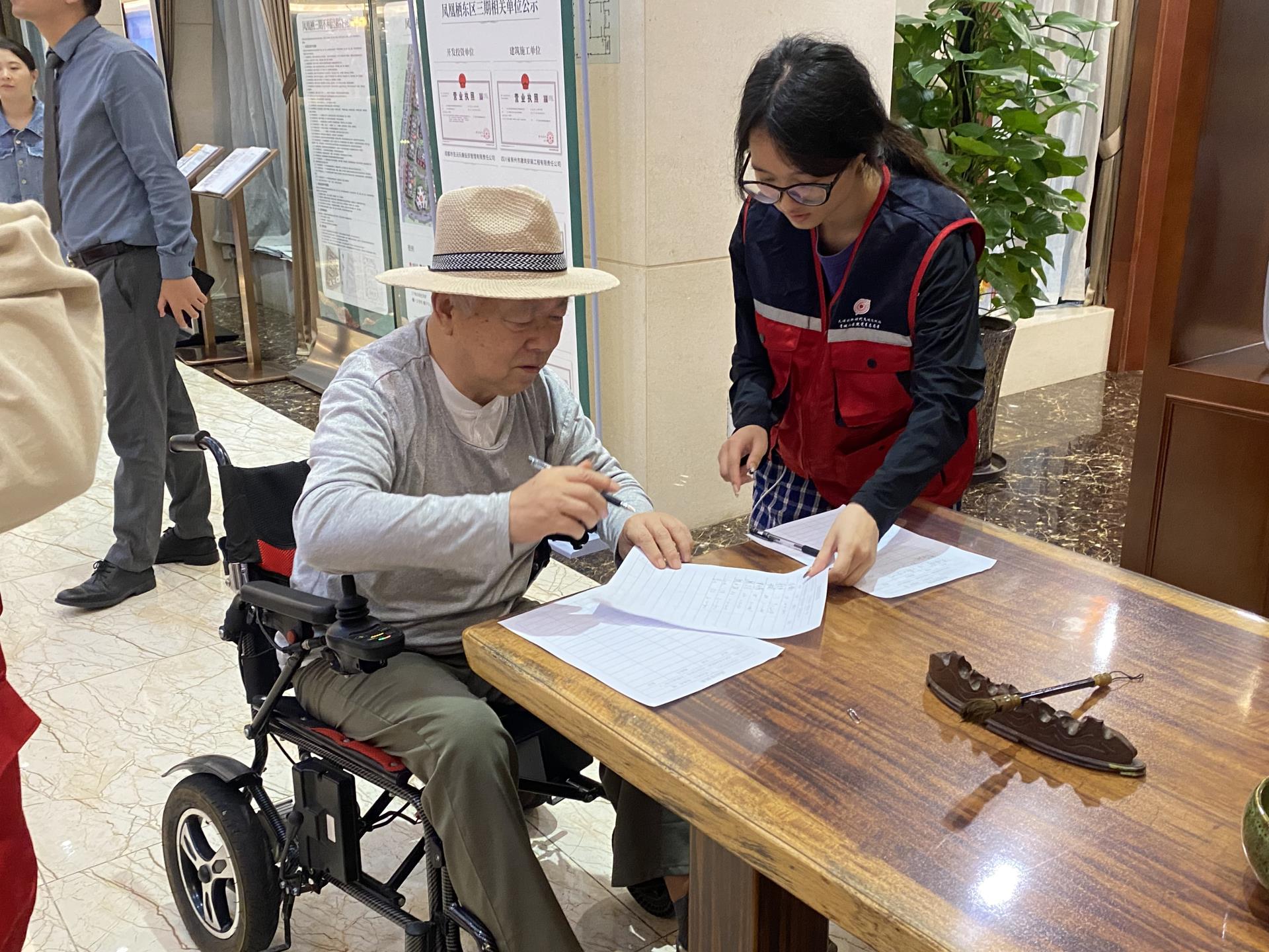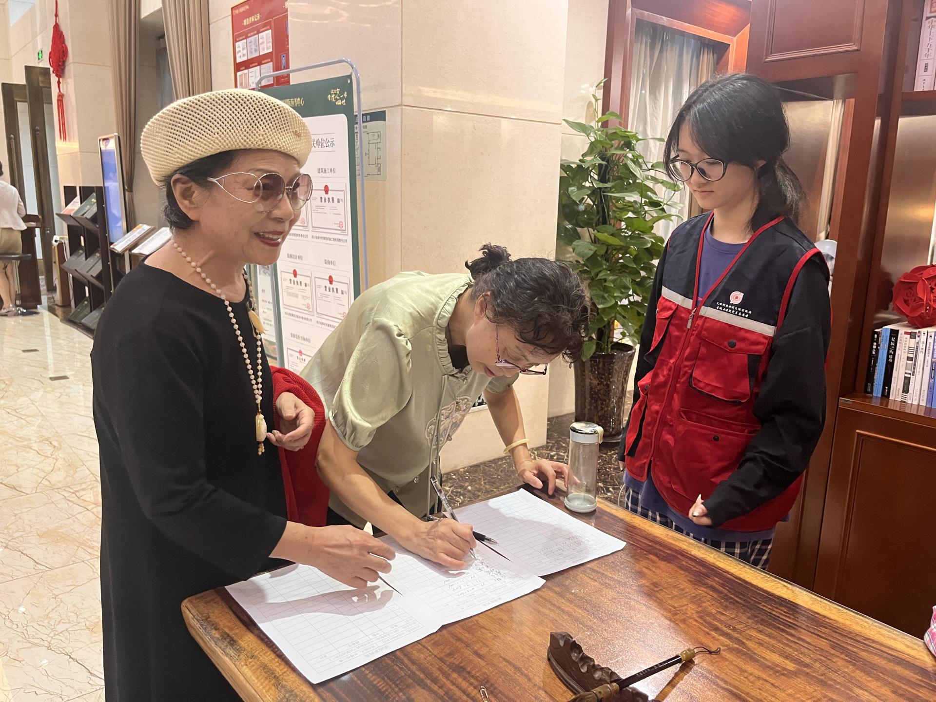 支部志愿者引导居民进行活动签到