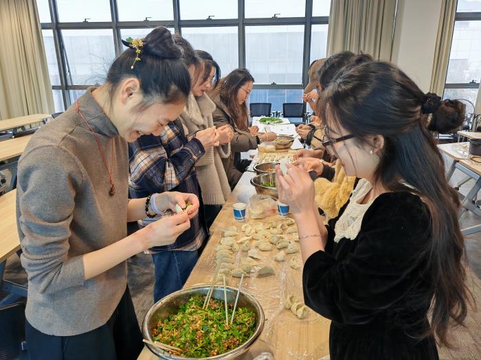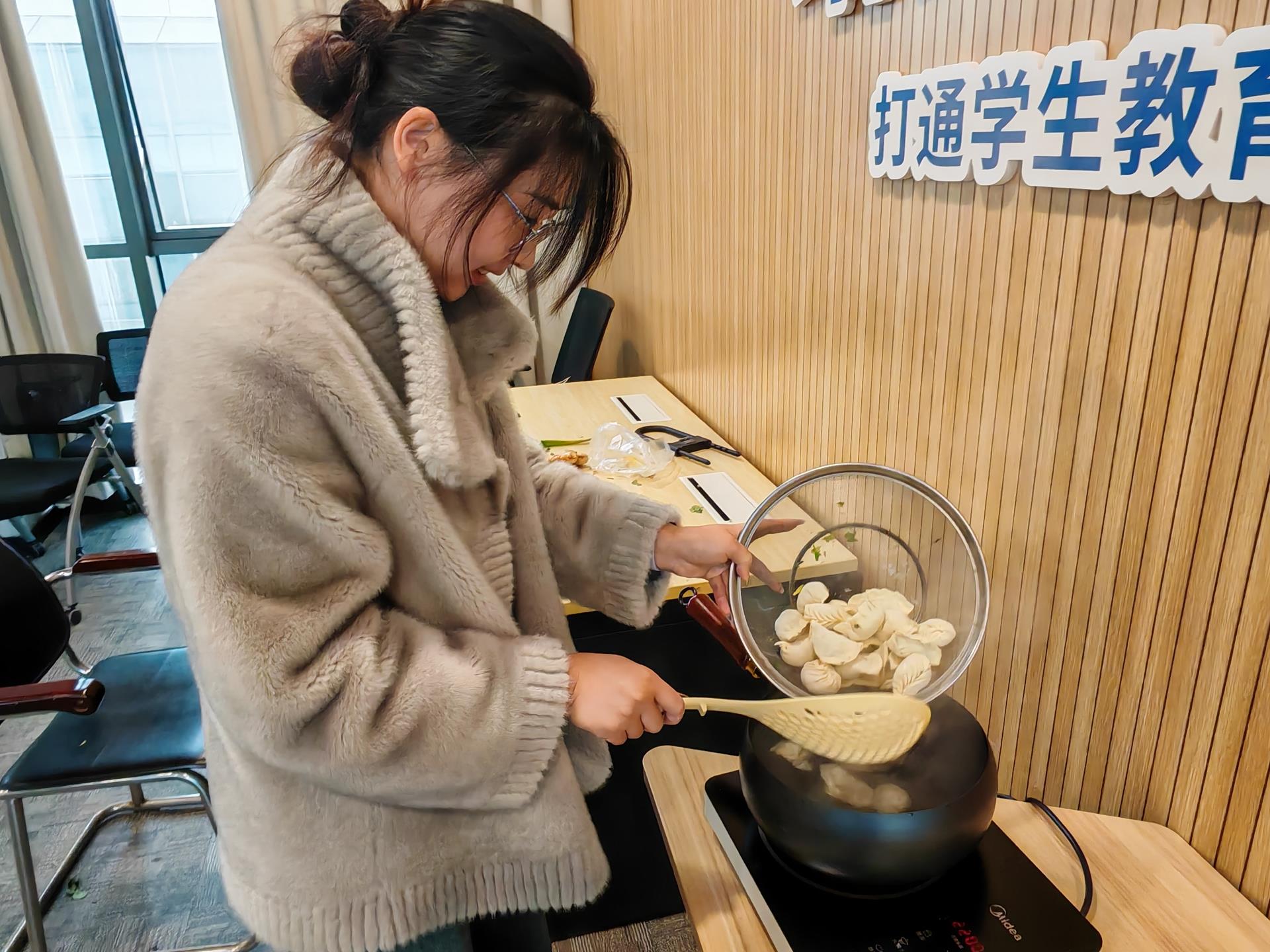 包饺间隙,党员同志们围绕“如何深化‘一站式’学生社区育人功能”“怎样更好地服务学生成长发展”等主题展开深入交流,结合日常工作经验分享育人心得,探讨党建与社区服务融合的新思路、新举措。大家纷纷表示,要始终坚守“以学生为中心”的理念,把初心使命落实到具体工作中,以更饱满的热情、更务实的作风为学生排忧解难,让“一站式”学生社区成为有温度、有质感的育人阵地。不少党员教师分享了自己深度参与“一站式”学生社区各类活动的经历:从带领学生制作中药香囊,传承传统手工艺与中医药文化,涵养文化素养与劳动意识;到开展艾灸养生体验活动,普及传统健康知识,培育学生健康生活理念;再到“八段锦”雅修,引导学生强健身心、锤炼意志。大家一致认为,“一站式”学生社区作为育人主阵地,其丰富的活动载体与沉浸式的育人环境,对学生德智体美劳全面发展意义重大——手工实践类活动锤炼学生劳动技能与审美素养,传统文化类活动厚植学生家国情怀与文化自信,文体健身类活动增强学生体质与心理素质,各类活动相互融合、相辅相成,真正实现了“五育并举”的育人目标。