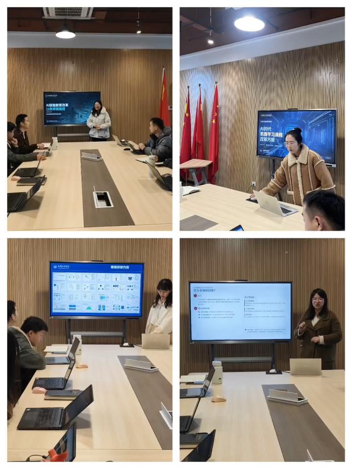 为持续推动人工智能与教育教学深度融合,医学信息工程系全体教师于寒假期间积极开展了AI赋能教育教学研修活动,围绕AI工具应用、课程内容重构、教学模式创新、实践体系升级等方面展开深入探索,形成了丰硕的改革成果。2026年3月5日,系部组织召开专题讨论会,教师通过PPT汇报等形式,集中展示了研修成果及本学期课程的改革思路,全面呈现了AI赋能教育的创新实践与未来愿景。